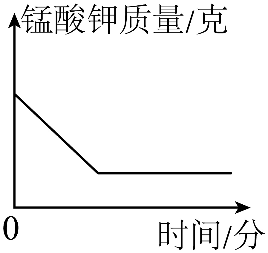 15、高锰酸钾制取氧气()实验中,高锰酸钾完全反应。下列能正确表示反应物和生成物质量随时间变化大致曲线的图是( )A、