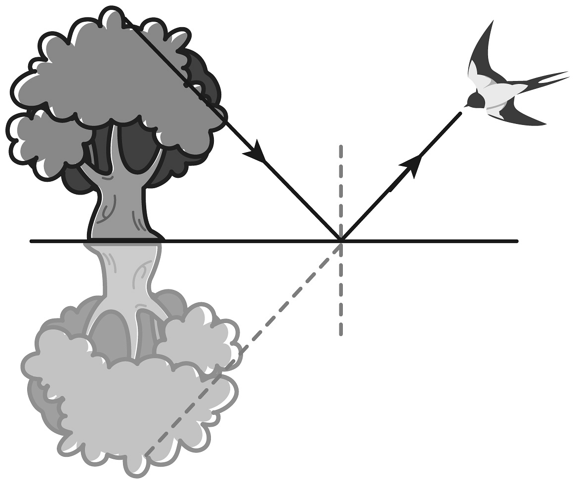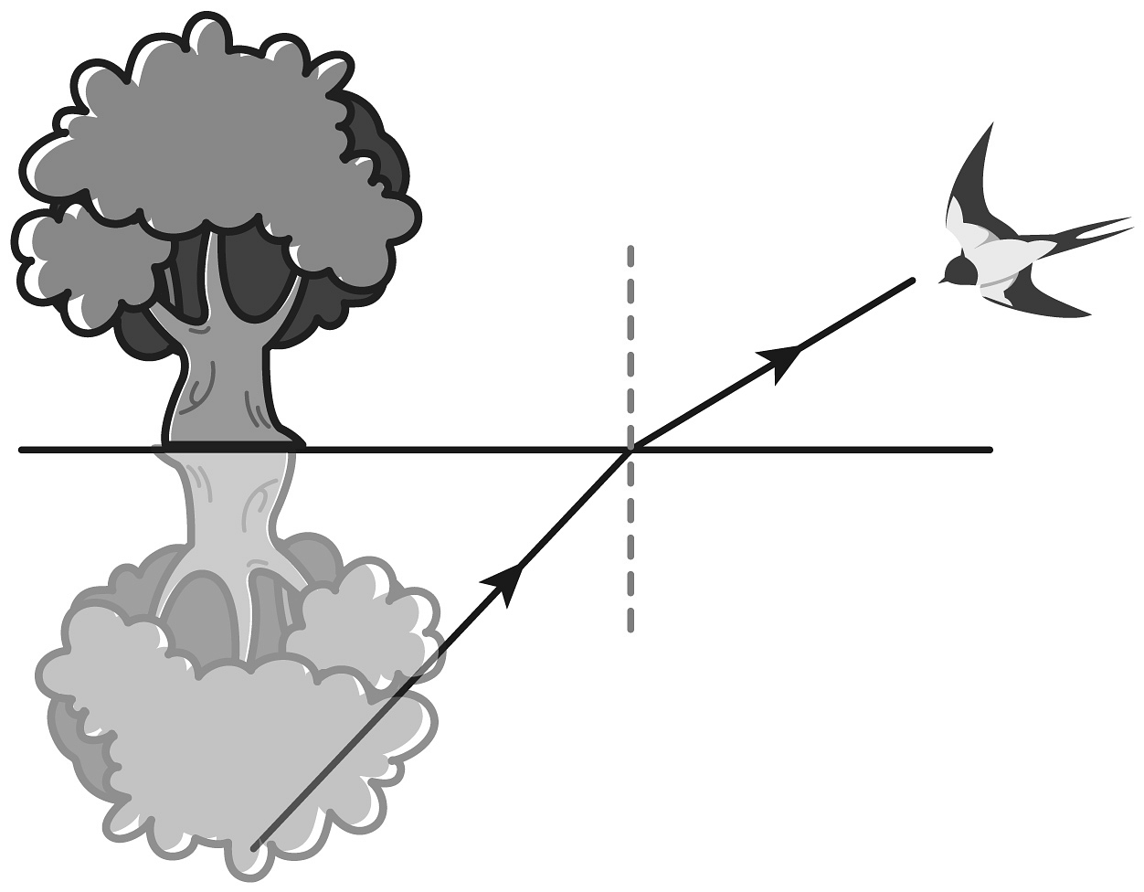 10、下列表示飞鸟看水中鱼和看树倒影的光路图中,正确的是( )A、