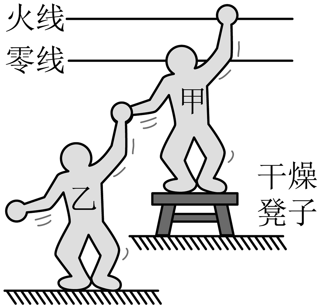 18、家庭电路设计的一个重要指标是保障用电安全,请从安全角度回答以下问题。(1)、家庭电路中电流过大时可能会引发火灾,因此电路中必须安装防止电流过大的保护装置——断路器,断路器应安装在电路的线上。(2)、甲站在干燥凳子上检修家庭电路中的火线,站在地面上的乙去拉甲,如图。若同一个人手与脚之间的电阻都为1200Ω,手与手之间的电阻都为1000Ω(不计各接触处的电阻)。通过计算并结合表中信息判断此时两人的人体反应。