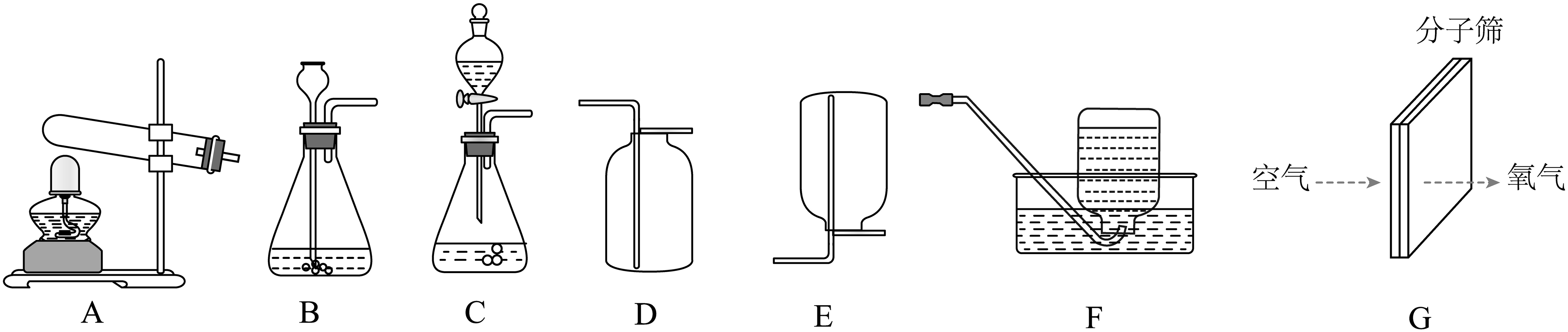 (2)某种家庭制氧机是利用分子筛技术获得高浓度氧气,其工作原理如图G,则空气中两种主要气体的分子体积大小为:氮气氧气(填“大于”“小于”或“等于”)。
