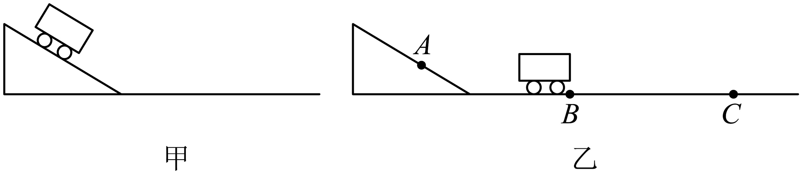 (2)图乙中小车由A点静止释放后,经B点到达C点停止运动;请在图乙中画出小车运动到B点时,小车所受力的示意图;