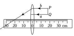 12、如图所示物体PQ放在凸透镜前,标尺0cm处为透镜光心,PQ两点分别发出的光线a和b平行于主光轴。画出光线a经过透镜后的光线。