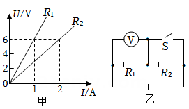 18、电阻的图象如图甲所示,则两端电压为0V时,该导体的电阻为;将接入电源电压不变的电路乙中,开关断开时,与的电流之比为;开关S闭合前后,电压表两次的示数之比为。