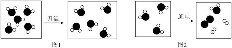 19、建立宏观与微观的联系是学习科学的重要素养。某物质X在升温和通电的条件下分别发生如图所示的变化。 (模型中,不同颜色和大小的小球代表不同的原子)