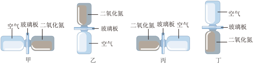 4、如图所示是四个关于分子运动的相关实验,回答下列问题(1)、红棕色的二氧化氮气体的密度大于空气的密度,甲图所示实验中能说明气体扩散的实验现象是:抽去玻璃板后一段时间。为验证实验结论的科学性,小科同学改变两集气瓶的位置多次实验,下列实验方案不可行的是(填选项字母)。(2)、乙图所示实验能说明液体扩散的快慢与温度有关,在实验过程中两烧杯中加入红墨水的实验要求是。(3)、丙图所示中将一定量的水与酒精混合后总体积变小,说明分子间存在间隙,还能说明分子具有的特征。(4)、丁图所示实验中,为使实验成功,应尽量将两铅块的接触面磨平,其目的是。两个铅块没有被重物拉开,说明了分子之间存在引力。