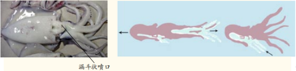 8、鱿鱼是以类似于火箭的推进方式来推动身体运动的。当它紧缩口袋状的身体,通过漏斗状喷口将水向前喷出,从而推动身体向后运动。如图,推动鱿鱼向后运动的力来自于( )A、四周的海水 B、口袋状身体的收缩 C、触足的摆动 D、喷口喷出的海水