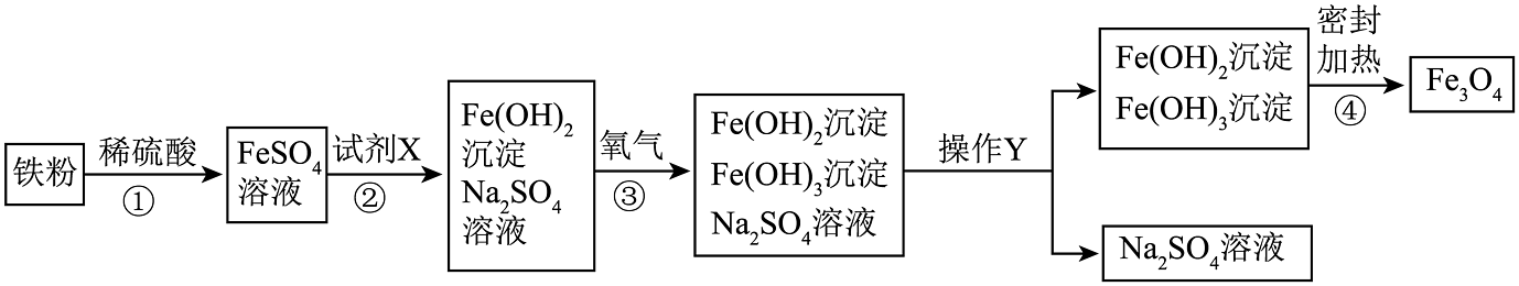 19、复印机用的墨粉中常添加磁性氧化铁(Fe3O4)粉末。Fe3O4是由Fe2+、Fe3+和O2-按1:2:4的个数比构成的。下图是生产复印用Fe3O4粉末的流程简图。已知第④步反应中各元素化合价保持不变。