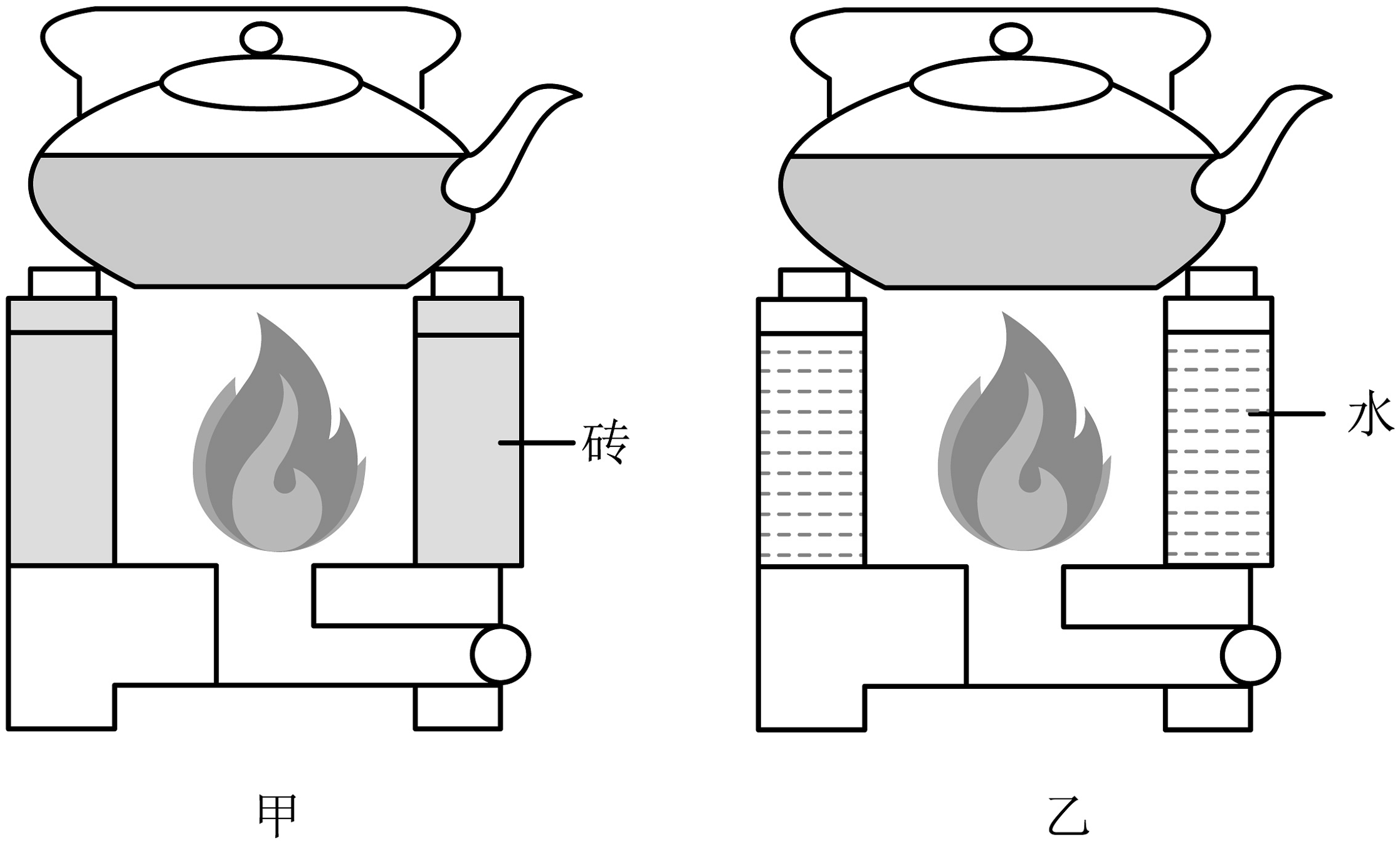 19、人们通常用砖砌成炉灶烧煤来加热水(如图甲),小明同学将这些普通的炉灶壁改装成装水的容器,这样在给水壶内的水加热的同时,也加热了炉灶壁内的水(如图乙)。这样做有利于( )A、提高煤的热值 B、煤的充分燃烧 C、提高炉子的效率 D、水壶内水吸收热量