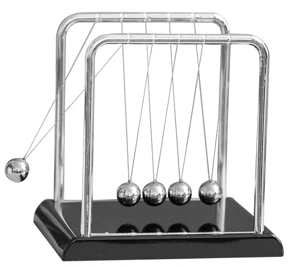 17、如图所示是牛顿摆球.当左边的小球撞击后静止了,右边的小球向右摆动.当右边的小球撞击后静止时,左边的小球向左摆.经过较长时间就会发现,小球摆动的幅度会越来越小,到最后会静止下来,这说明小球的能减少了,转化为能了,在转化和转移的过程中,能量的总量。