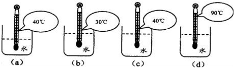 如图所示,(a)杯中水量较少、(b)(c)(d)杯中的水量相同.根据问题(2)中所得的推理性结论,比较各杯中水的内能的大小:
