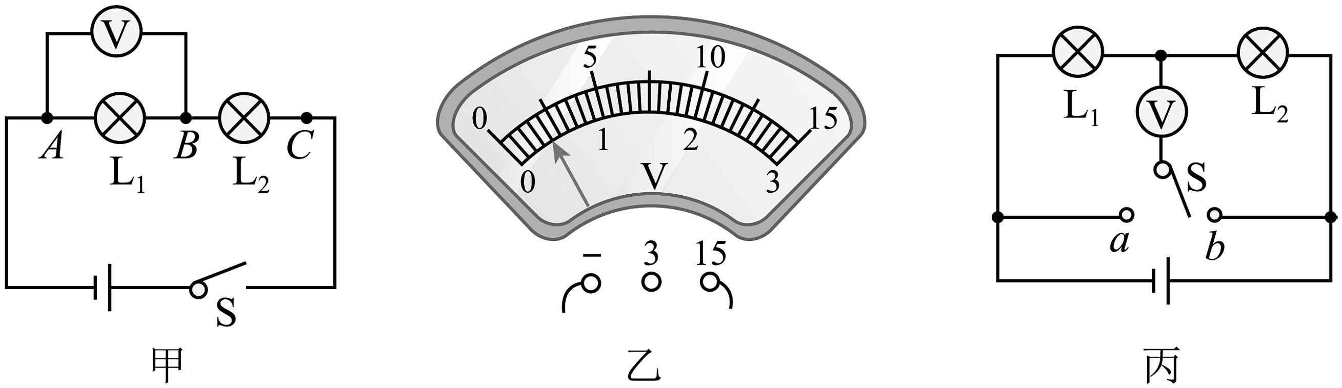 (5)同组的小亮设计了如图丙所示的电路来“探究串联电路中的电压规律”,他设想当单刀双掷开关接a时,电压表测L1两端的电压;单刀双掷开关接b时,电压表测L2两端的电压,后来他通过实际操作发现,该电路不能完成这个探究实验,原因是。