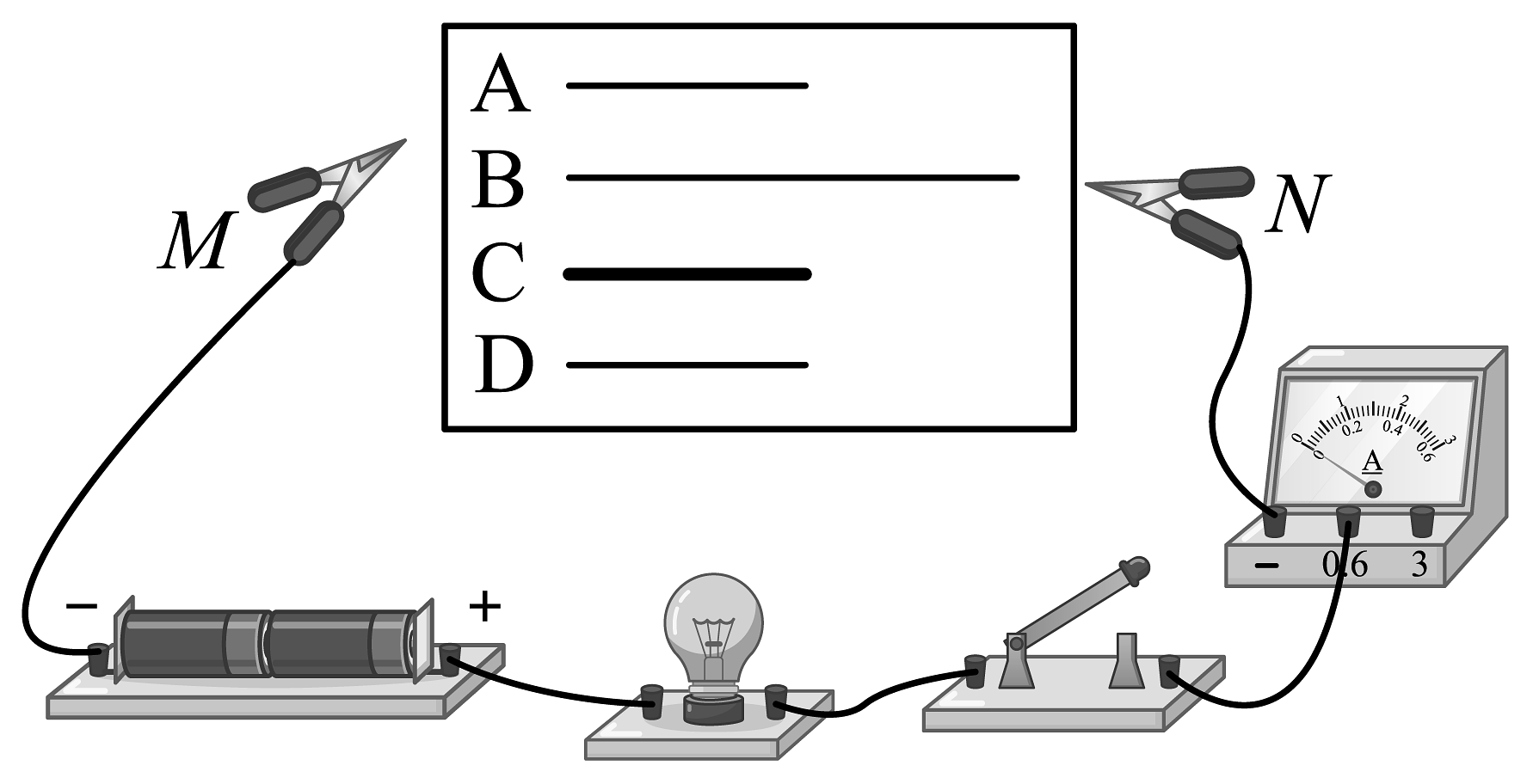 12、在探究“影响导体电阻大小因素”的实验中,保持电源电压不变,如图所示,在M、N点之间分别接入不同的电阻丝,其规格如表所示: