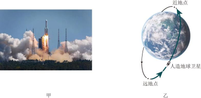 11、 如图甲所示的是人造地球卫星随火箭加速上升的情景:如图乙所示的是人造地球卫星沿椭圆轨道绕地球运行的情景,离地球最近的点叫近地点,最远的点叫远地点。下列说法中正确的是( )A、图甲:在加速上升的过程中,人造地球卫星的动能转化为重力势能 B、图乙:在运行过程中,当人造地球卫星从远地点向近地点运行时,动能转化为重力势能 C、图乙:在运行过程中,当人造地球卫星从近地点向远地点运行时,其速度减小 D、在甲、乙两图中,人造地球卫星的机械能都不变