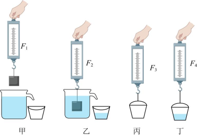 12、 如图,小军用图中实验过程验证阿基米德原理,下列说法正确的是( )A、由甲、乙两实验过程得出, , 说明石块重力减小 B、由甲、乙两实验过程得出,石块受到浮力 C、由可以得出,石块受的浮力等于石块排开液体受的重力 D、为操作方便减小实验误差,合理的实验顺序是乙、甲、丙、丁