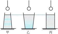 3、 如图,甲、乙、丙三个容器放置于水平桌面上,容器底面积相同,且装有相同深度的水,现将三个完全相同的铁球分别浸没在三个容器的水中(铁球未碰到容器底),水也均没有溢出,此时, 容器底面受水的压强最大的是 , 对桌面的压力最小的是容器.