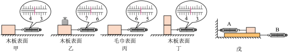 1、 如图是探究“滑动摩擦力的大小与哪些因素有关”的实验情景。(1)、用弹簧测力计拉动木块在水平长木板上做运动,根据原理,可知木块受到的摩擦力大小等于弹簧测力计的示数;(2)、通过分析比较甲、乙两次实验,可知滑动摩擦力的大小与有关;(3)、将甲图中的木块从中间竖直切开,然后叠放在一起,继续实验,如图丁所示。分析甲、丁两次实验数据,说明滑动摩擦力的大小与接触面积;(选填“有关”或“无关”)(4)、该小组实验中发现较难保持木块匀速运动,导致弹簧测力计示数不稳定,于是他们改进实验,如图戊所示,固定弹簧测力计,拉动长木板进行实验,他们尝试快速拉动长木板和缓慢拉动长木板,发现两次实验中,弹簧测力计A的示数(选填“快速拉动时大”、“缓慢拉动时大”或“一样大”)。