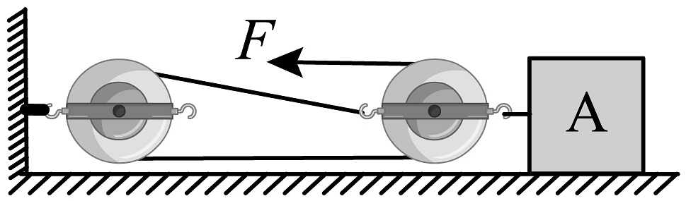 11、如图所示,小强在1min内用滑轮组将物体A沿水平地面匀速移动10m,已知物体A重为400N,它受到的摩擦力为90N,小强所用拉力为40N,则A的重力做功为J,总功为J,此滑轮组的机械效率为。