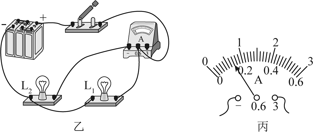 8、按以下设计要求,用笔画线代替导线在图中完成相应的实物连接图(导线不能交叉)。要求:①开关S控制两灯;②开关S1只控制灯L2;③电流表只测通过灯L2的电流(电流表选0.6A量程)。