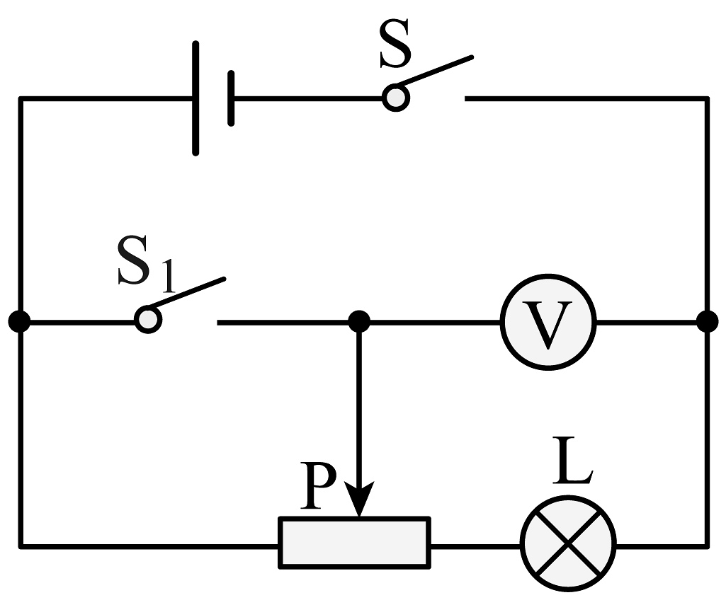 3、如图所示,当开关S、S1闭合时,滑动变阻器的滑片P向右移动,灯泡L的亮度(选填“变亮”、“变暗”或“不变”);电压表V的示数(选填“变大”、“变小”或“不变”)。