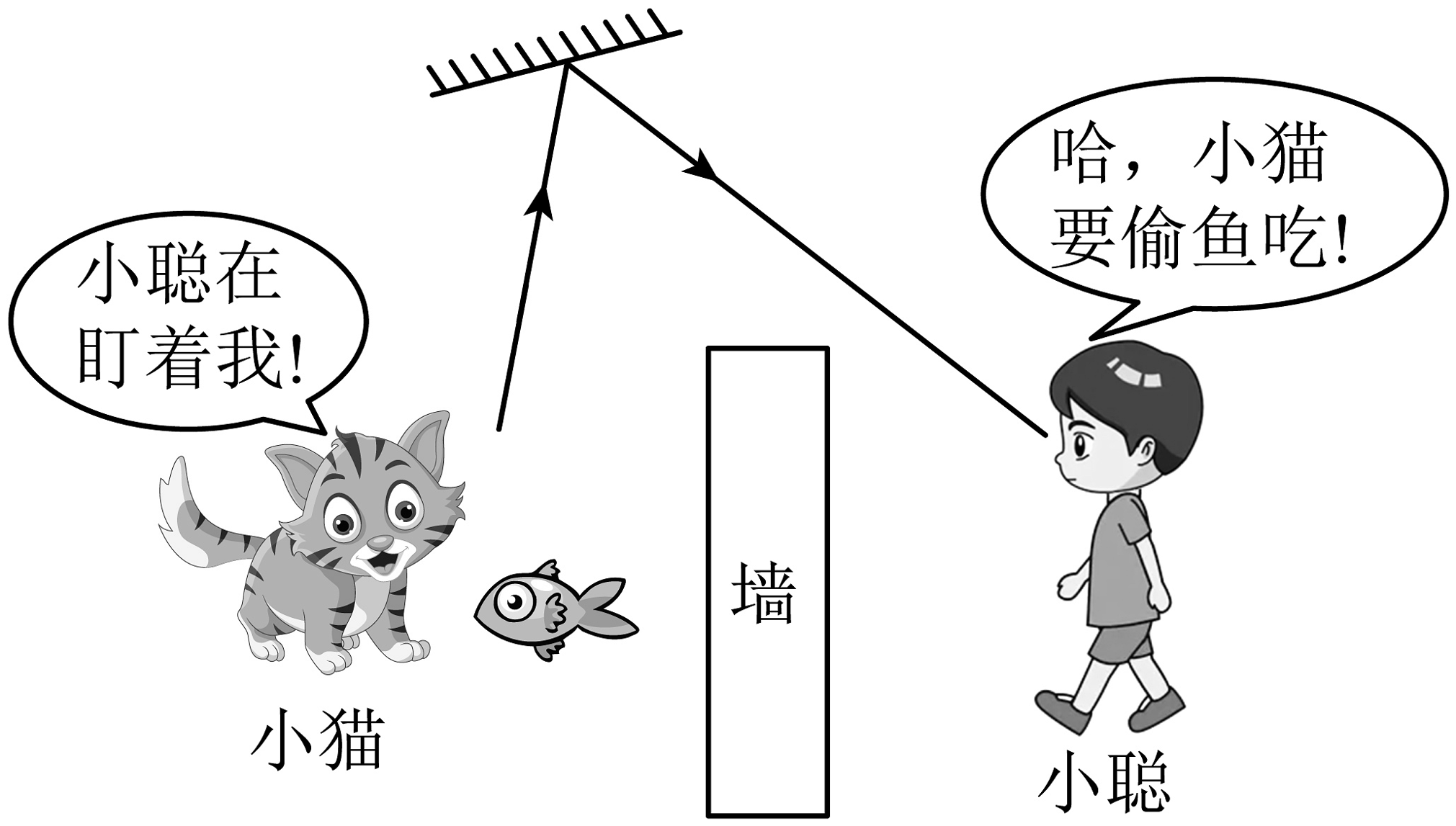 17、礼堂的投影屏幕采用表面粗糙的材料是利用光发生(选填“镜面”或者“漫”)反射。如图所示,小猫和小聪可以通过镜子互相看到对方,此现象说明光在反射时,光路是 的(选填“可逆”或“不可逆”)。