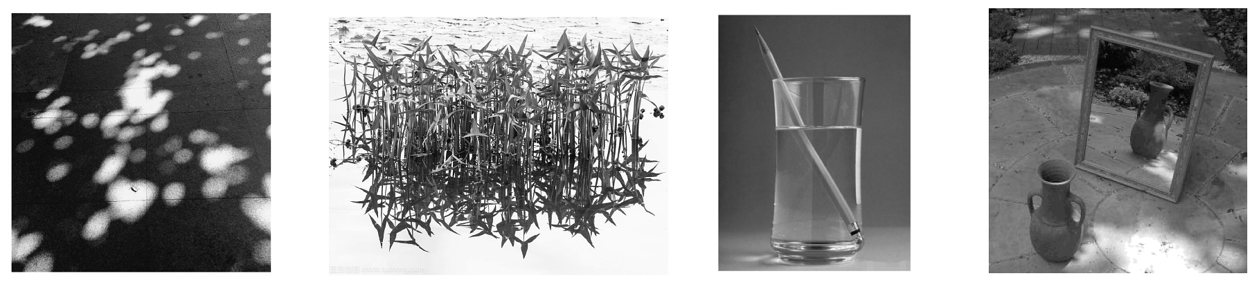 7、如图所示,四种光学现象中,由于光的反射形成的是( )A、树荫下圆形光斑 B、竹在水中的倒影 C、铅笔在水面“断”了 D、陶罐在镜中成像