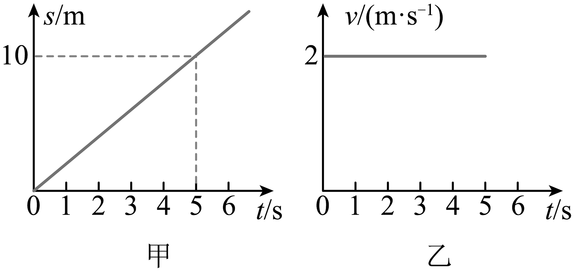 10、如图所示,甲、乙两物体同时同地向相同的方向做直线运动,图甲是甲物体运动的s-t图象,图乙是乙物体运动的v-t图象,下列说法正确的是( )A、甲做变速直线运动,乙做匀速直线运动 B、在0-5s内,甲的平均速度大于乙的平均速度 C、速度越大的物体,运动一定越快 D、根据公式可知,物体速度与其通过的路程成正比