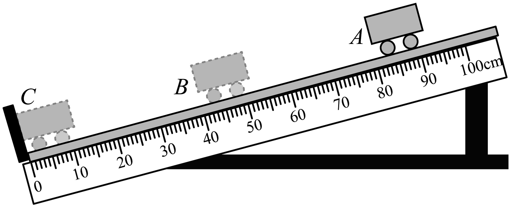 2、如图所示是在斜面上测量小车运动的平均速度的实验,让小车从斜面A点由静止开始下滑,分别测出小车到达B点和C点的时间,即可测出不同阶段的平均速度。(1)、该实验原理是。(2)、实验时应保持斜面的倾角较小,这是为了减小测量(选填“路程”或“时间”)时产生的误差。(3)、若在测量过程中小车过了A点才开始计时,则测得小车在AC段的平均速度会偏填“大”或“小”)。(4)、测得从B滑到C的时间tBC=1.6s,SBC=cm,则BC段的平均速度VBC=m/s。(5)、实验中,测量小车在不同路程上的平均速度,目的是为了_____。A、求速度的平均值,减小实验误差 B、探究小车从斜面上滑下时速度变化的规律