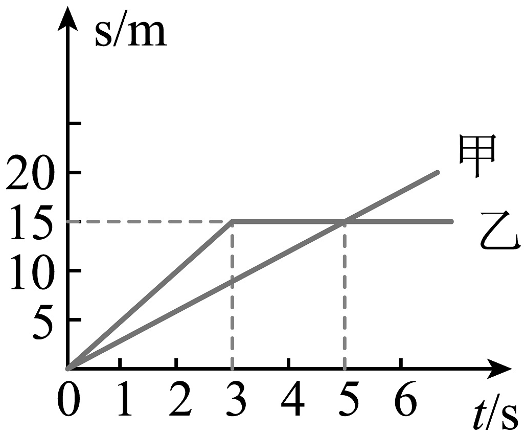 3、甲、乙两物体同时从同一地点出发沿直线向同一方向运动,它们的图像如图所示,根据图像信息,求:(1)、甲的速度是多少?(2)、0~5s内,甲和乙相距的最大距离是多少?