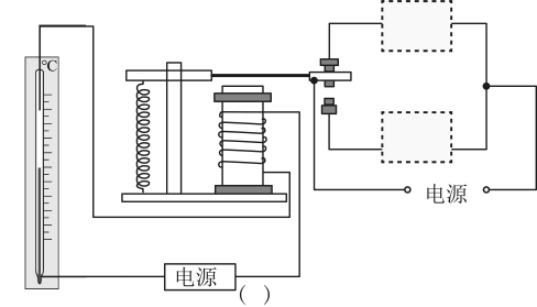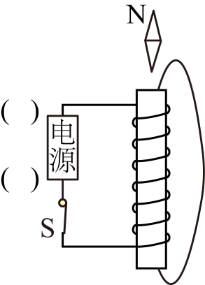 18、(1)、如图在符合安全用电原则的前提下,请将带有保险丝的三孔插座及电灯接入电路中。(其中部分电路已连接完成且要求开关只控制电灯)(2)、如图所示,请根据小磁针静止时N极的指向,标出通电螺线管外部的磁感线方向并在括号内标出电源的“+”“一”极。(3)、某温度自动报警器的原理图如图所示。电磁铁上端为N极,在水银温度计中封入一段金属丝,当温度低于设定温度时,安全指示灯常亮;当温度达到设定温度时,安全指示灯熄灭,电铃发出报警信号。请在括号中标出电源的极性(用“+”或“-”表示),并在虚线框内填入电铃(
