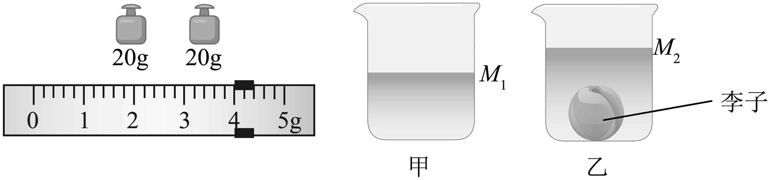②将李子放入凉茶中,李子沉底,如图乙所示,在烧杯上标记此时液面的位置M2;