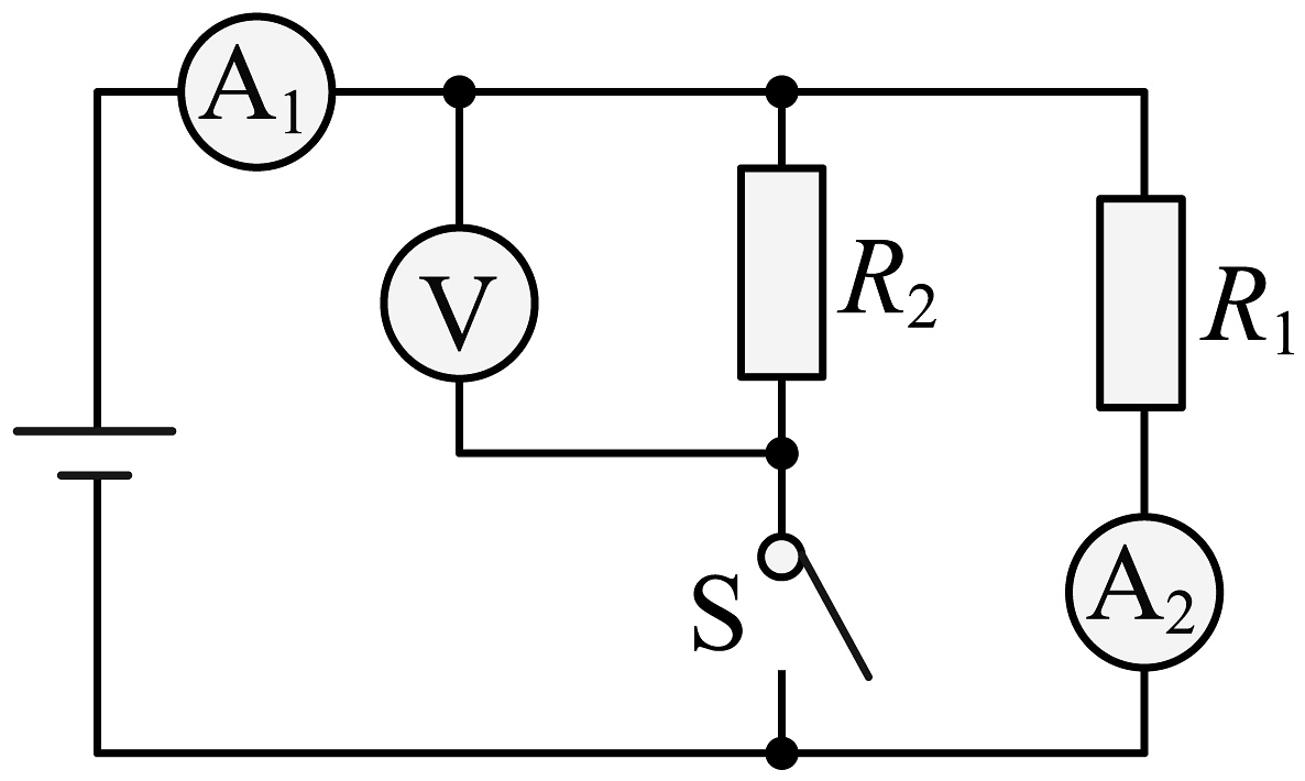 3、如图所示电路,电阻 , 。闭合开关S,电流表的示数与的示数之比为;断开开关S,电压表V的示数将会变为V。