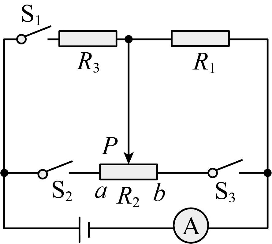 5、在如图所示的电路中,电源电压U恒定,和为定值电阻,且 , 是规格为“20Ω,2A”的滑动变阻器。当只闭合开关和 , 把滑片P移到端点b时,电流表的示数为;当三个开关都闭合,把滑片P移到端点a时,电流表的示数为 , 把滑片P移到端点b时,电流表的示数为 , 且比增大了0.6A。求:(1)、电源电压U;(2)、只闭合开关 , 移动滑片至滑动变阻器中点处,求此时电路中的电流;(3)、若在电路中增加一只电压表测电压,并在以下器材清单里重新选择恰当量程或规格的器材将原电路中的电流表A、电源U、定值电阻、滑动变阻器全部更换。