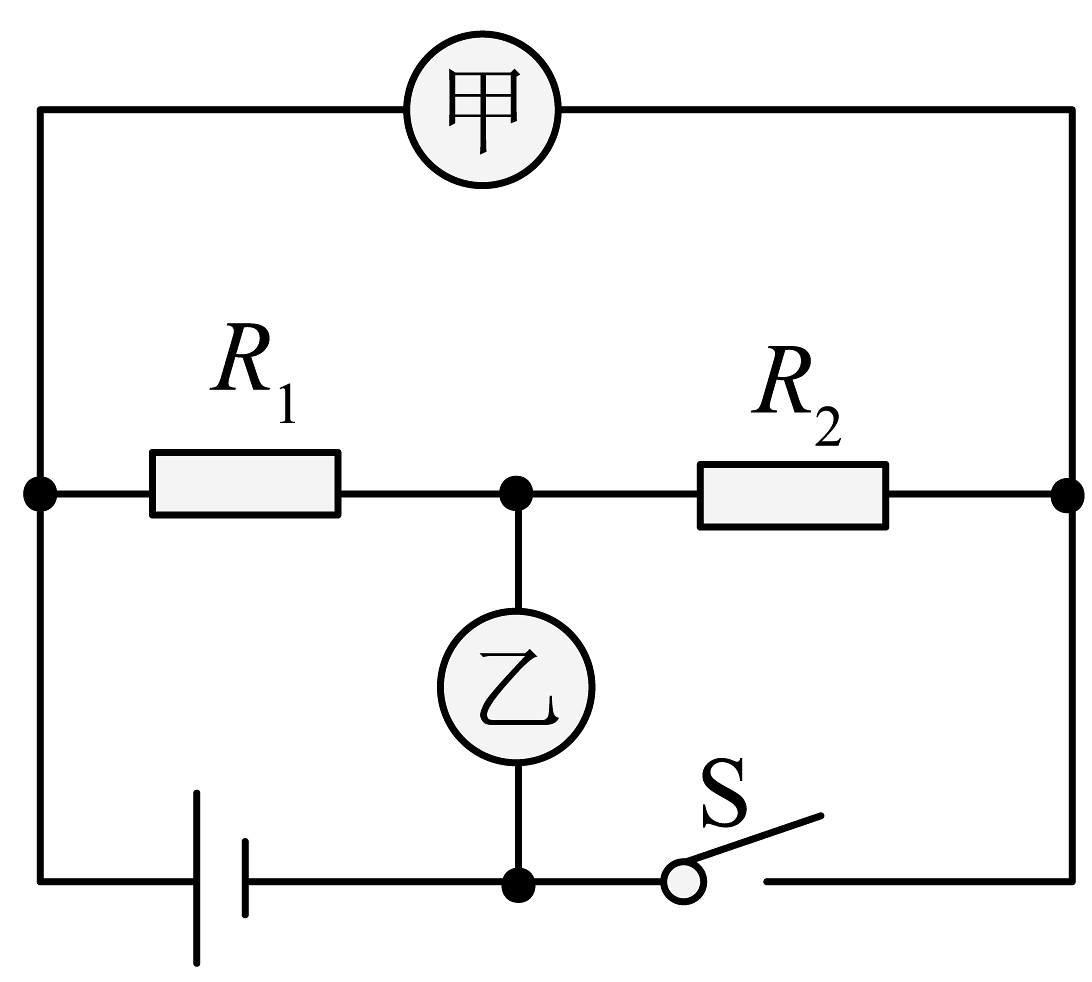 8、如图所示电路中,R1:R2=5:3,若断开开关S,在甲、乙两处均接入电流表,甲、乙两表示数之比为I甲:I乙=( )A、3:5 B、5:8 C、8:5 D、5:3
