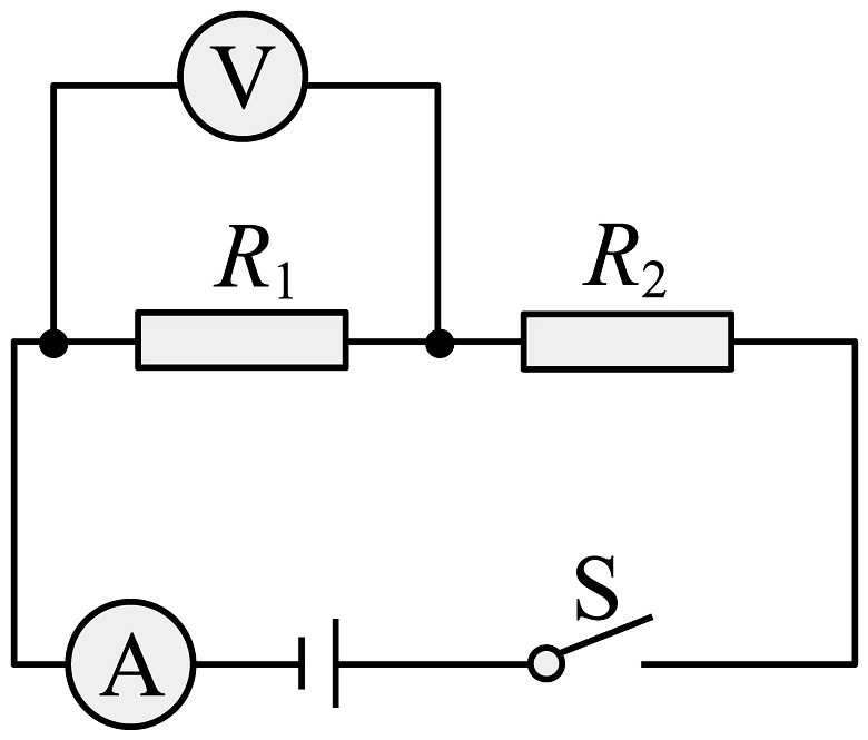 9、如图所示的电路中,电源电压为6V,闭合开关S后,电压表读数为2V, , 求:(1)、流过的电流;(2)、电阻的阻值。