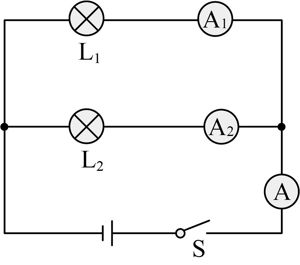 5、研究并联电路中电流特点时,小强连接了如图所示的电路。通过实验发现,并联电路中的干路电流等于各支路电流之和。小强猜想:在并联电路中,且电源电压不变的条件下,若支路越多,就会将干路电流分成更多份,会使得原支路上的电流变小。为了验证他的猜想,设计了如下实验。(1)、请根据图甲中的电路图,用笔画线代替导线将图乙补充完整,使电流表测量流过C点的电流;(2)、闭合开关后,小强看到灯L2发光,但灯L1不发光,电路可能存在的故障是_______;A、短路 B、短路 C、开路 D、短路(3)、用电流表分别测量L1、L2、干路的电流,将实验数据记录在表格中;