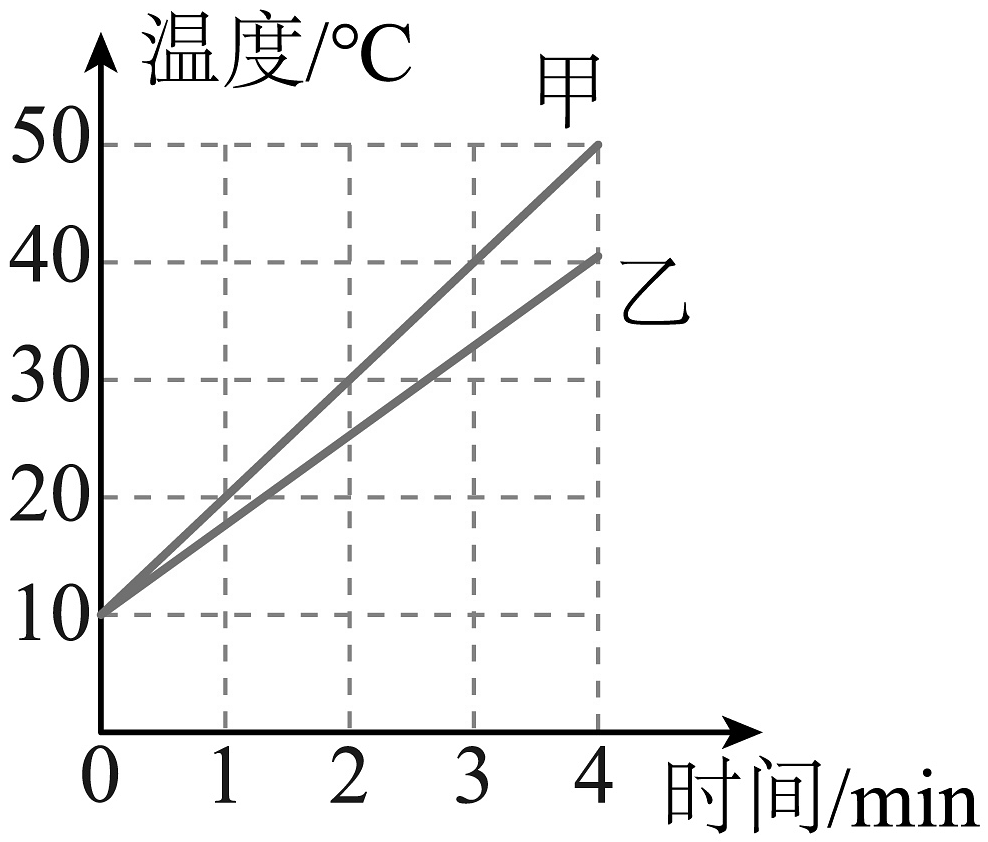 2、为了研究不同物质的吸热能力,某同学用两个完全相同的电加热器,分别给质量和初温都相同的甲、乙两种液体同时加热,分别记录加热时间和温度,根据记录的数据作出了两种液体的温度随时间变化的图像,如图所示。