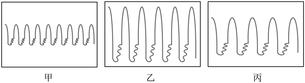 12、现有三个编钟甲、乙、丙,分别敲击它们,用同一个示波器记录声信号,如图所示。则编钟的音调最高,编钟振幅最大;我们能区分编钟与其它乐器发出的声音,主要是根据声音的(填声音特性)。