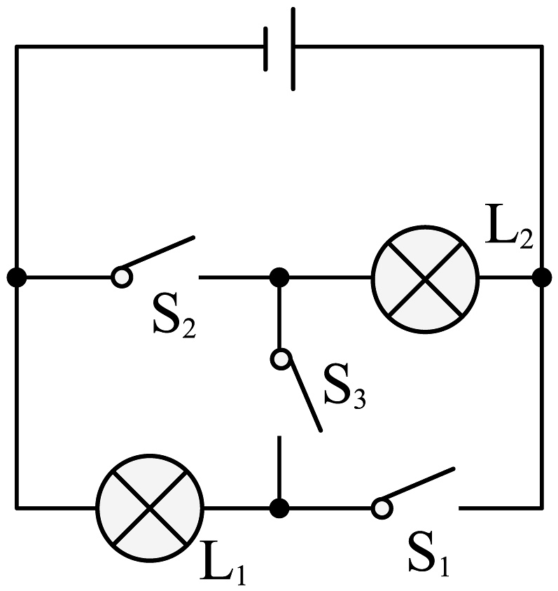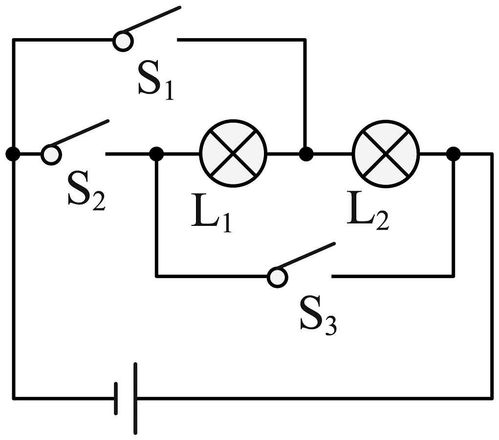 16、如图所示电路中,只闭合S1、S2时,灯L1、L2是 , 只闭合S3时,灯L1、L2是(选填“串联”或“并联”),同时闭合开关会造成电源短路。