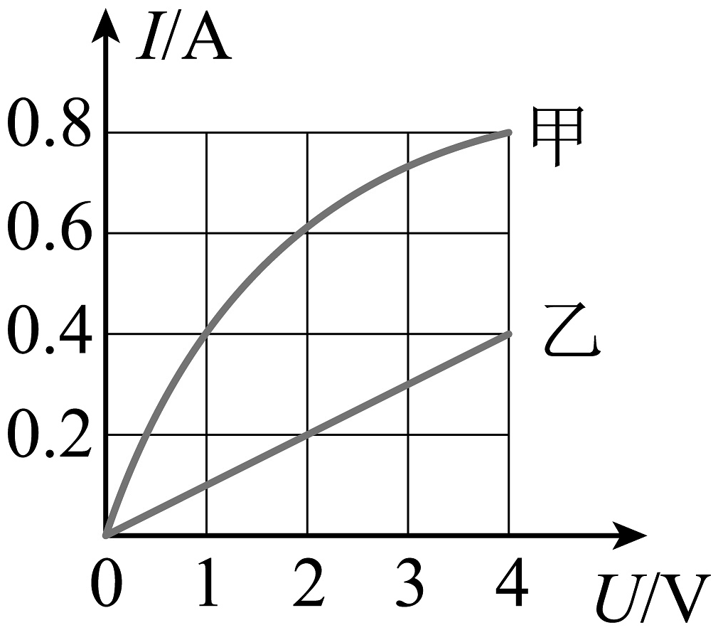 20、如图所示是定值电阻R和小灯泡L中电流随电压变化的图像,由图像可知( )A、乙是小灯泡的图像 B、定值电阻的阻值为5Ω C、将R和L并联接在4V的电源上,干路中的电流是1.2A D、将R和L串联接在6V的电源上,电路中的电流是0.4A