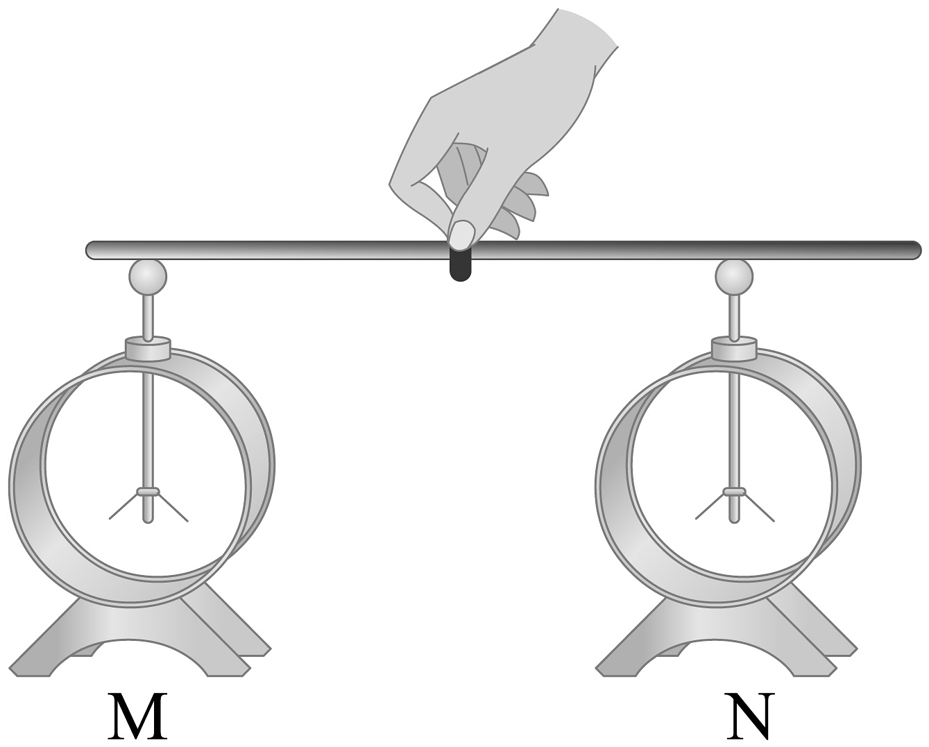 13、小星用毛皮摩擦过的橡胶棒接触验电器M,发现验电器M的金属箔片张开。接着他用带有绝缘柄的金属棒将验电器M和不带电的验电器N的金属球连接起来,如图所示,发现验电器N的金属箔片也张开,下列说法正确的是( )A、若用手触摸金属棒,M、N的金属箔片张角不变 B、验电器原理是异种电荷相互吸引 C、金属棒中的电流方向是从N到M D、毛皮摩擦过的橡胶棒带正电荷,说明摩擦过程中橡胶棒失去了电子