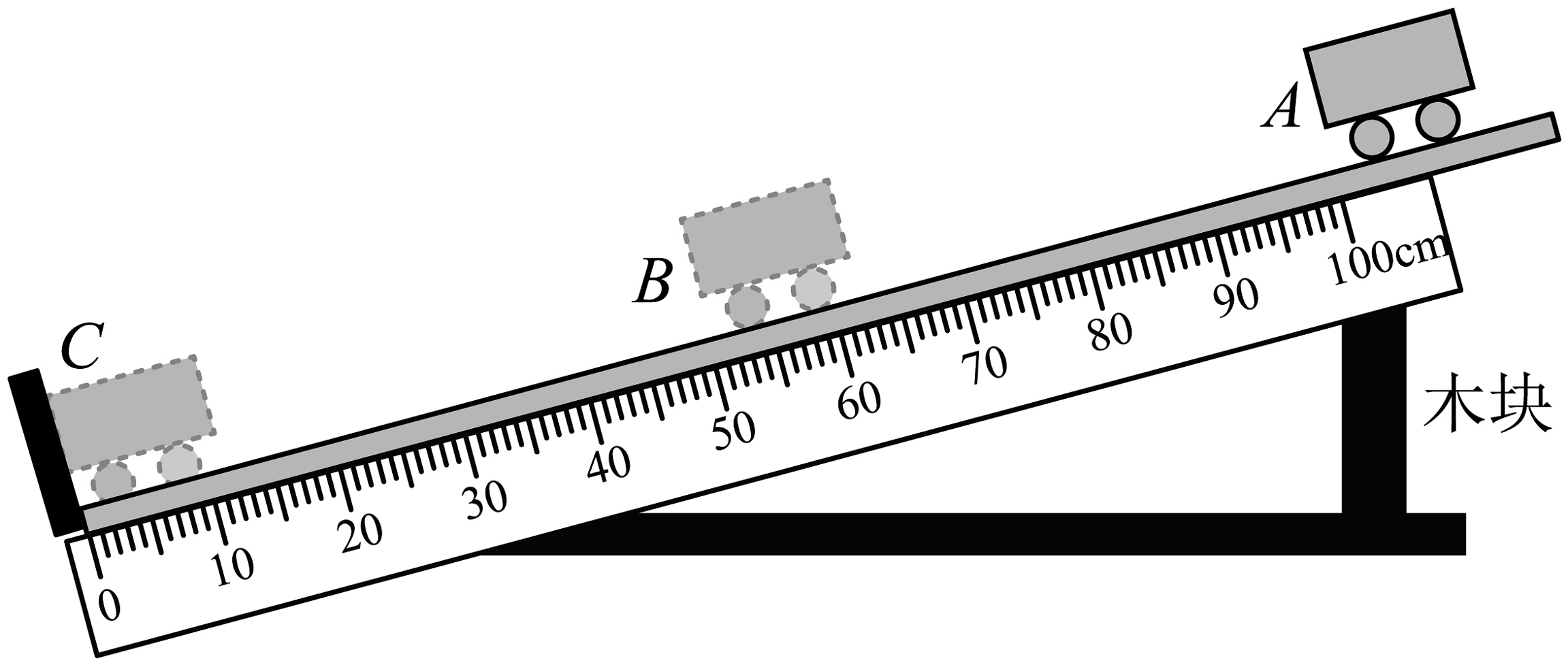 2、如图所示,是小阳“测量小车运动的速度”所采用的实验装置,该装置的坡度可以由木块调节。实验过程中小车从A位置由静止自由下滑,经B到达C位置。(1)、小阳测出从A到C测出的时间为2s,则小车从A到C的平均速度为m/s;(2)、根据小车运动的情况,可分析出小车在AB段运动的时间一定(选填“大于”、“等于”或“小于”)1s;(3)、小涵与小阳采用了同一装置并重新摆放后,多次测得AC段的平均速度总比小阳的大,则原因可能是小涵的装置。