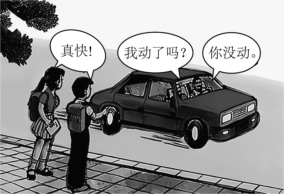 8、放学路上,小明和小红沿人行道步行,一辆出租车从他们身旁疾驰而过,如图所示。对于车上的乘客,司机说“你没动”,而小红说“真快”。司机和小红认为乘客的运动情况是不同的,是因为他们各自选择的不同,这也说明了运动和静止是的。