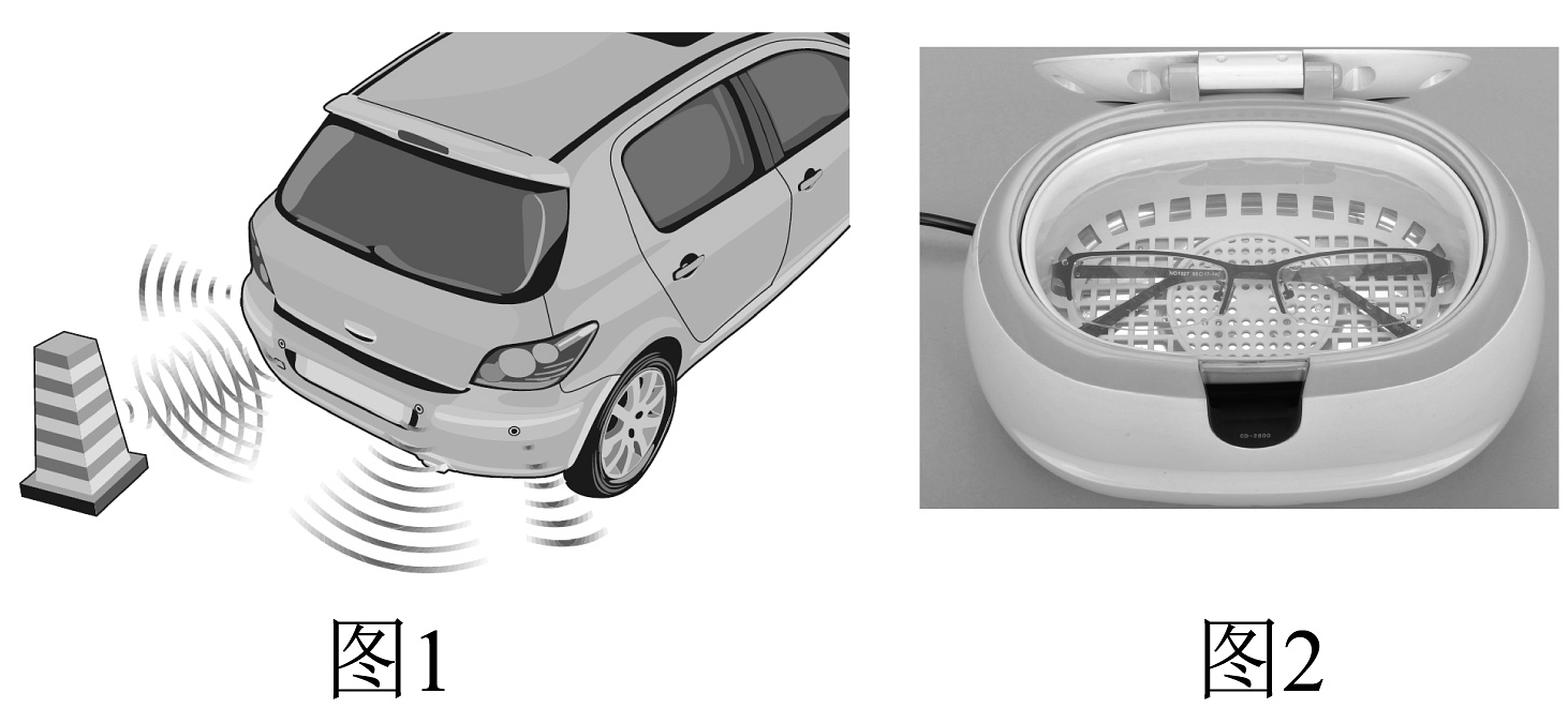 7、如图所示1,通过倒车雷达判断车离物体的距离,这主要是利用了声波能传递。如图2所示,利用该声波还能清洗眼镜,这说明声还能传递。
