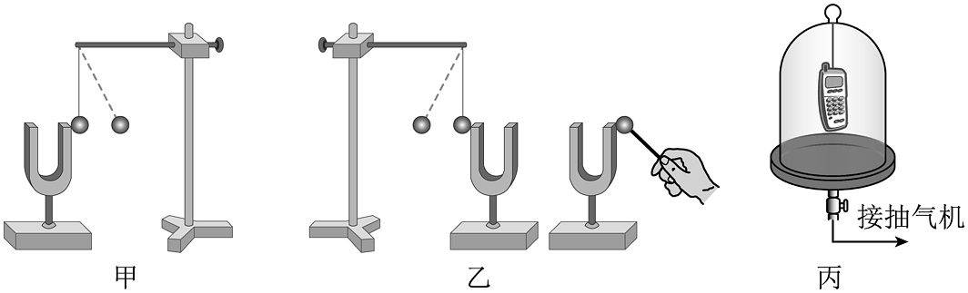 16、小华和小兰在探究“声音的产生与传播 ”时:(1)、如图甲所示,正在发声的音叉将悬挂着的乒乓球反复弹开,说明声音是由物体 产生的;(2)、如图乙所示,敲响右边的音叉,左边完全相同的音叉也会发声并把乒乓球弹起,说明 可以传声;(3)、如图丙所示,抽气机不断向罩外抽气的过程中,罩内音乐芯片的铃声会越来越小,进一步推理得出:。