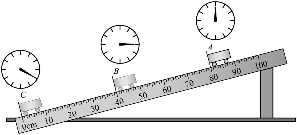 17、某物理小组的同学们在做“探究速度的变化”的实验中,所用秒表每格为1s,小车车身长5cm。如图所示:(1)、该实验的原理是;(2)、在实验中,斜面倾斜的角度应较小,目的是;(3)、小车全程的平均速度 v= m/s。