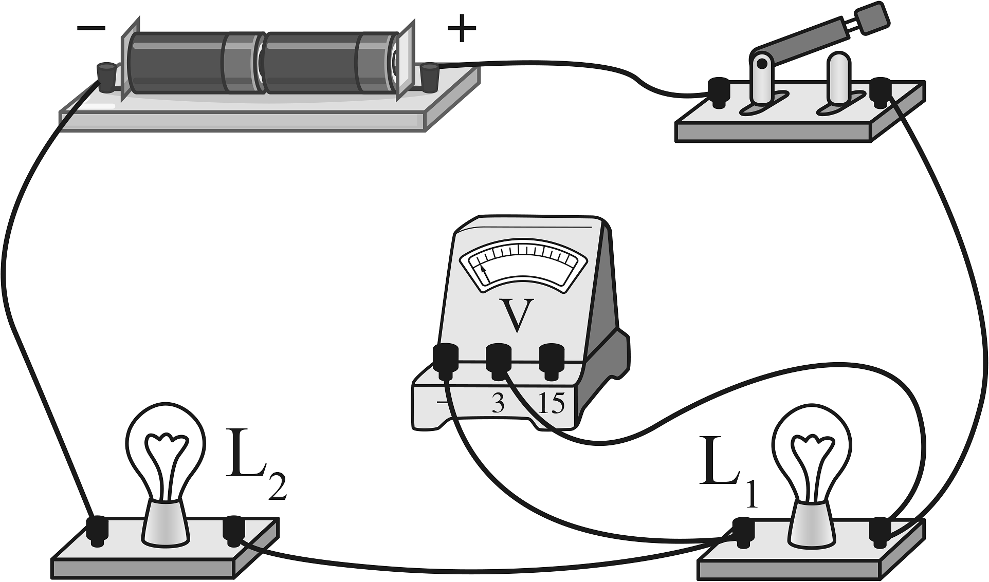 9、如图所示电路中,闭合开关后,下列分析正确的是( )A、两只小灯泡并联 B、电压表测量L1两端的电压 C、若L1不发光,一定是L1断路 D、若L2不发光,电压表示数一定为0