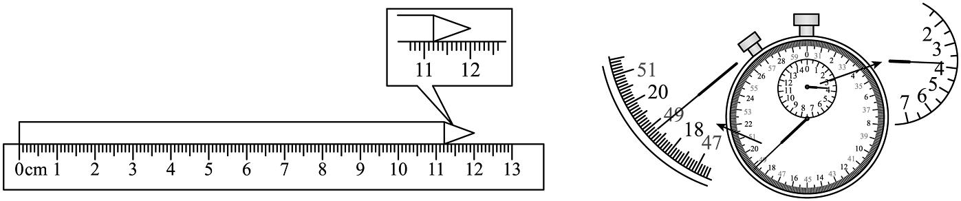20、如图所示,用刻度尺测量铅笔的长度,读数为cm。秒表的读数是s。