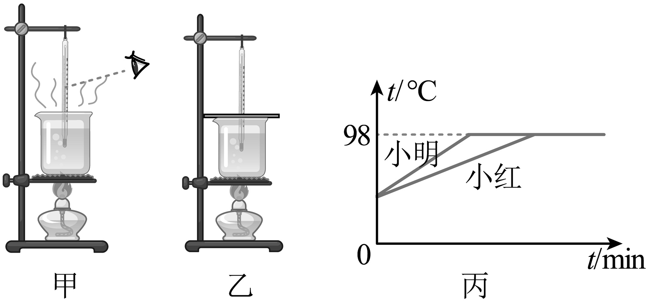 (3)图丙是两名同学根据实验数据绘制的水温度随时间变化的图象;