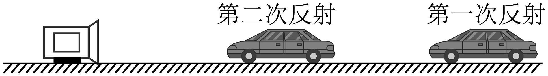 13、在某段区间测速路段,交管部门在公路上设置了固定测速仪。如图所示,汽车向放置在路中的测速仪匀速驶来,第一次发出信号到测速仪接收到信号用时 0.8s ,第二次发出信号到测速仪接收到信号用时0.6s。若两次发出信号的 间隔是1.1s,求:(1)、汽车反射第一次信号时距离测速仪多远?(2)、汽车从反射第一次信号到反射第二次信号间行驶的路程;(3)、汽车行驶的速度。