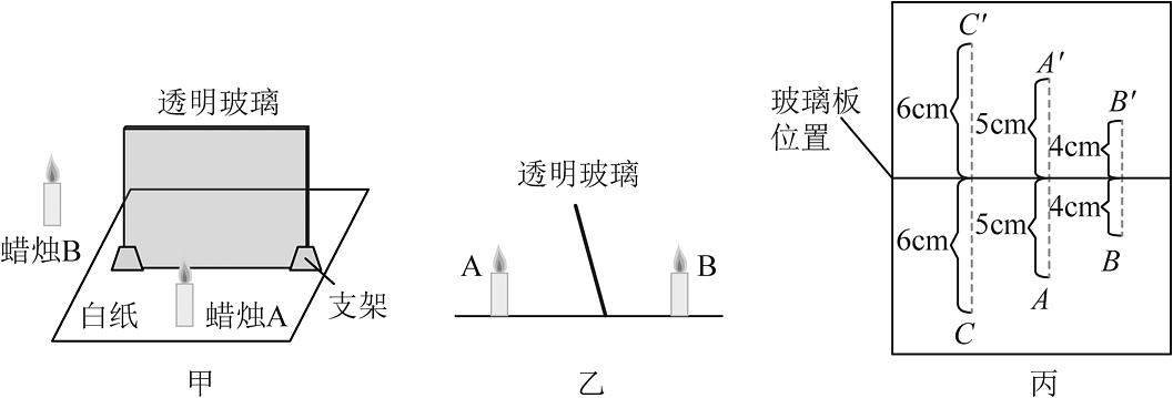 5、如图甲所示,是某同学在水平桌面上探究“平面镜成像的特点”时的实验装置。(1)、实验中可以用透明玻璃板代替平面镜进行实验的原因是玻璃板既可以像平面镜一样成像,又是透明的,从而;(2)、在如图乙所示的玻璃板前放一支点燃的蜡烛A,可以看到玻璃板后面出现蜡烛A 的像。拿大小完全相同、未点燃的蜡烛B 在玻璃板后面移动,人眼一直在玻璃板前面观察,发现无法让B 与 A 的像完全重合,原因是;(3)、该同学改变蜡烛的位置多次实验,分别确定了物与像的三组位置,如图丙所示,分析图中数据可得结论:;(4)、之后该同学又换用长度不同的蜡烛,再做了几次实验。多次实验的目的是;(5)、在实验中,用光屏并没有承接到蜡烛的像,可知平面镜所成的像是虚像,关于虚像的说法正确的是( )A、虚像是人的幻觉,实际上并没有光线进入人眼 B、虚像不是实际光线汇聚而成的 C、虚像不清晰
